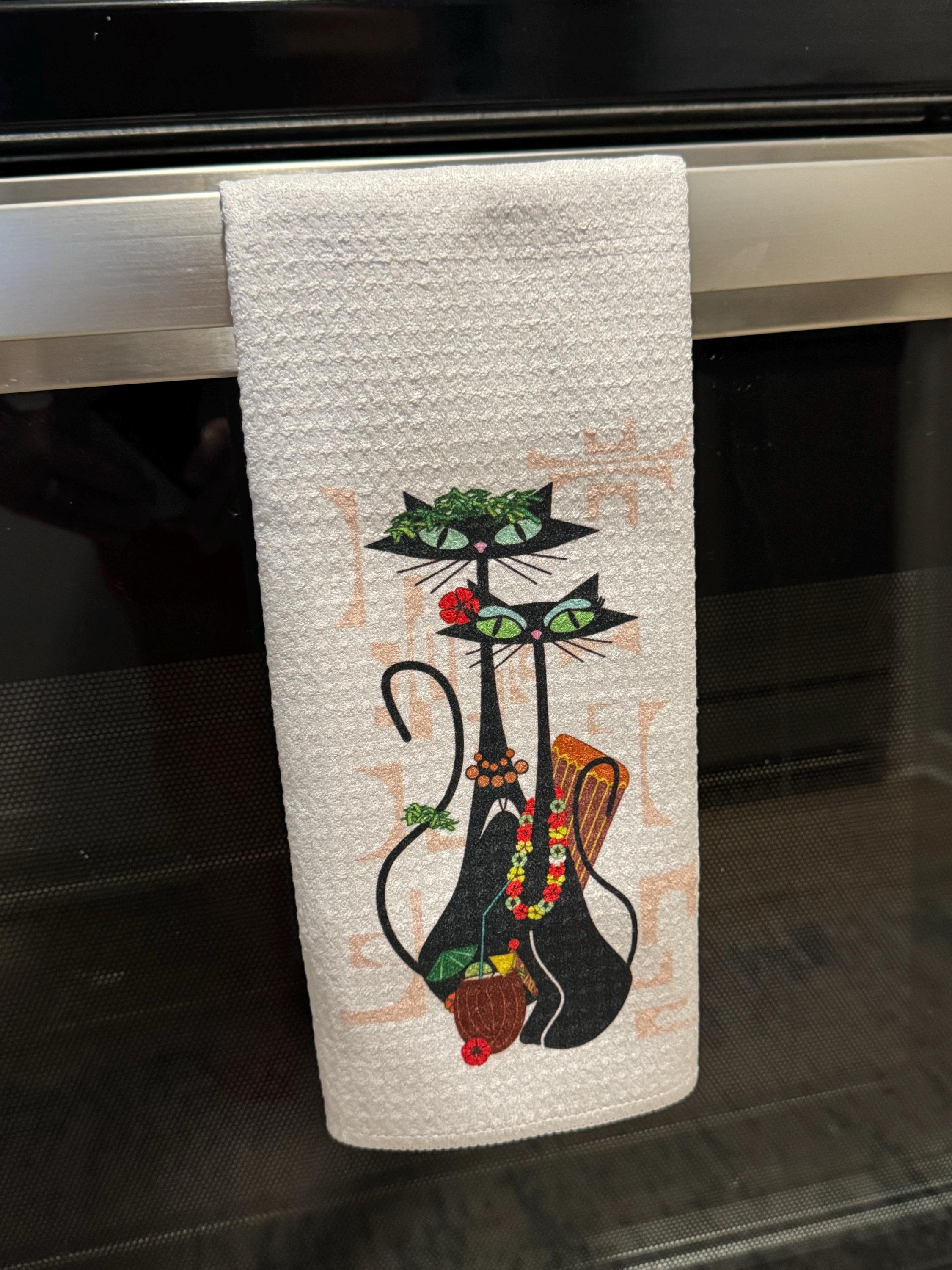 Tiki-Inspired Atomic Cats Kitchen Towels – A Mid Century Marvel!