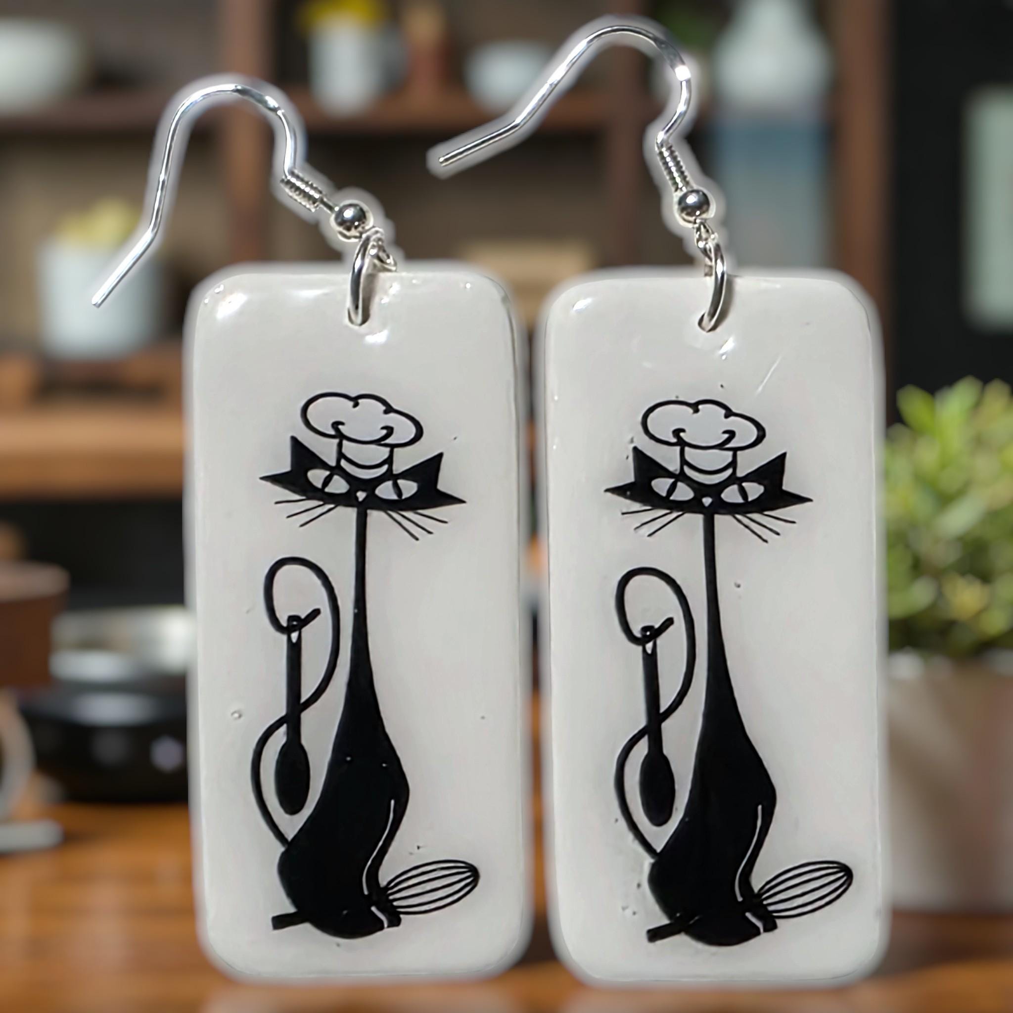 Chef Cat - Handmade Atomic Cat Earrings – Original Art on Polymer Clay